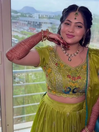 Haldi and Mehendi ceremonies are full of color, fun, and tradition. I create fresh, simple, and glowing looks that are perfect for these daytime events. My focus is on water-resistant makeup that stays put through all the festivities, often complemented by beautiful floral jewelry.