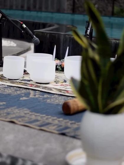 We offer sound baths where you either lie down or float in a pool while we use crystal bowls and gongs for chakra balancing and deep relaxation, with a special option to feel sound through water for stronger effects.