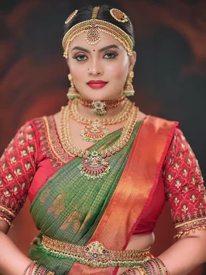 - Full Accessories: Choker, Long Haram, Jhumkas, Tikka, Heavy Vaddanam (Belt), and Jada accessories.