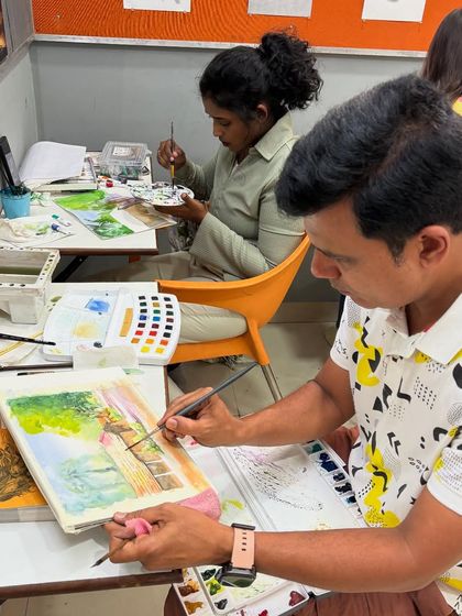 I conduct immersive art workshops focusing on watercolor and acrylic painting techniques. These residential sessions provide hands-on training in portrait drawing, figure sketching, and advanced watercolor methods like skin shading and architectural illustrations.