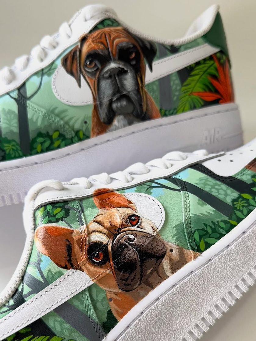 These are some of the most personal pairs I create. I can paint anything that tells your story, from detailed portraits of your beloved pets to a mashup of your favorite hobbies, travels, and achievements.