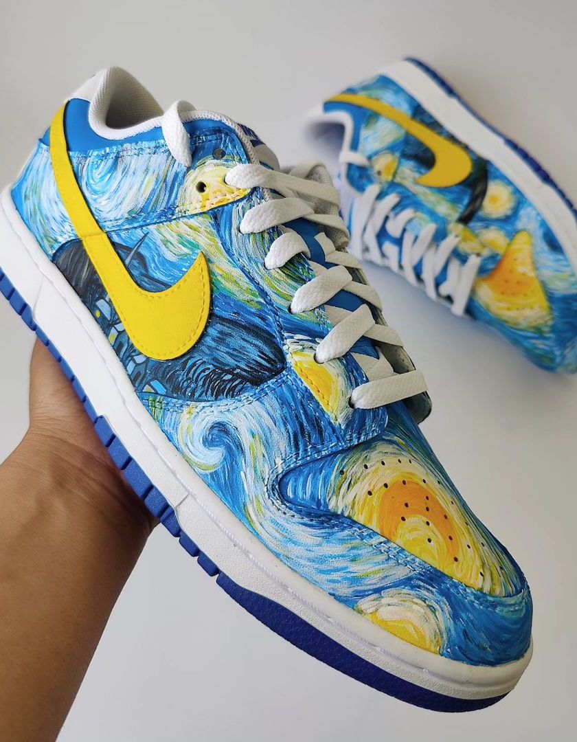 I love recreating masterpieces from legendary artists like Van Gogh and Gustav Klimt on sneakers. These wearable art pieces are for those who appreciate fine art and want to carry a piece of history with them.