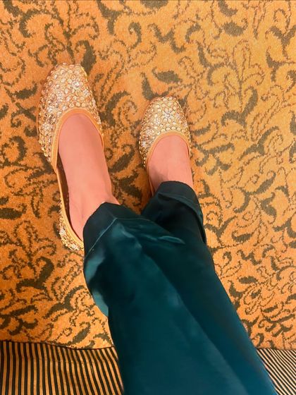 We craft premium leather footwear that blends traditional Indian craftsmanship with contemporary design. Our collection includes handcrafted ballet flats in metallic and studded variations, alongside hand-embroidered leather juttis from our Nazrana collection.