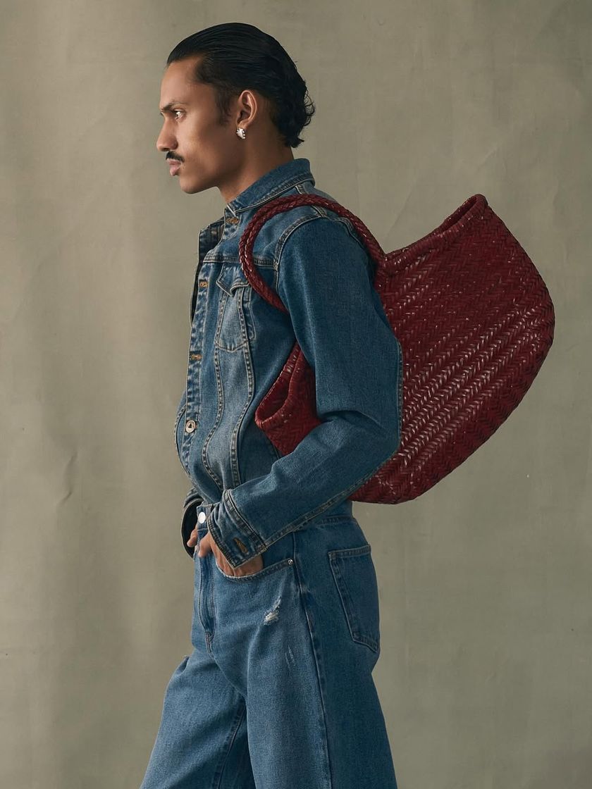 This collection is a tribute to the art of Indian leather weaving, a craft we are passionate about preserving. Each bag is handwoven by our women artisans in Chennai from supple, vegetable-tanned leather, resulting in unique textures and durable forms like our Gaia, Axel, and Potter totes.