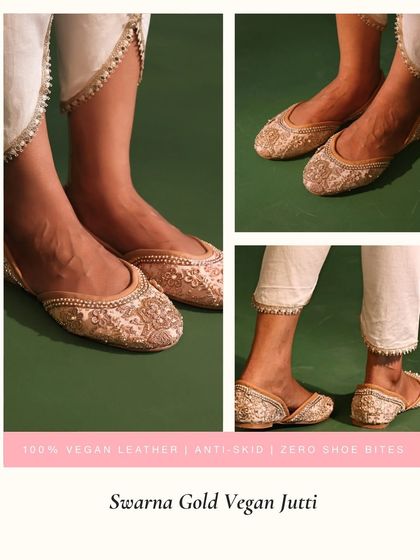 We offer comfortable vegan juttis, stable heels, and handcrafted bags with detailed work for weddings and festivals.
