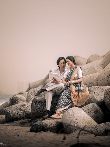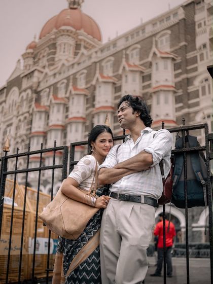 I create film-style couple and pre-wedding shoots with candid moments, real emotions, and unique themes like '90s Bombay, using pro gear and collaborating with you to make each shoot feel personal and honest.