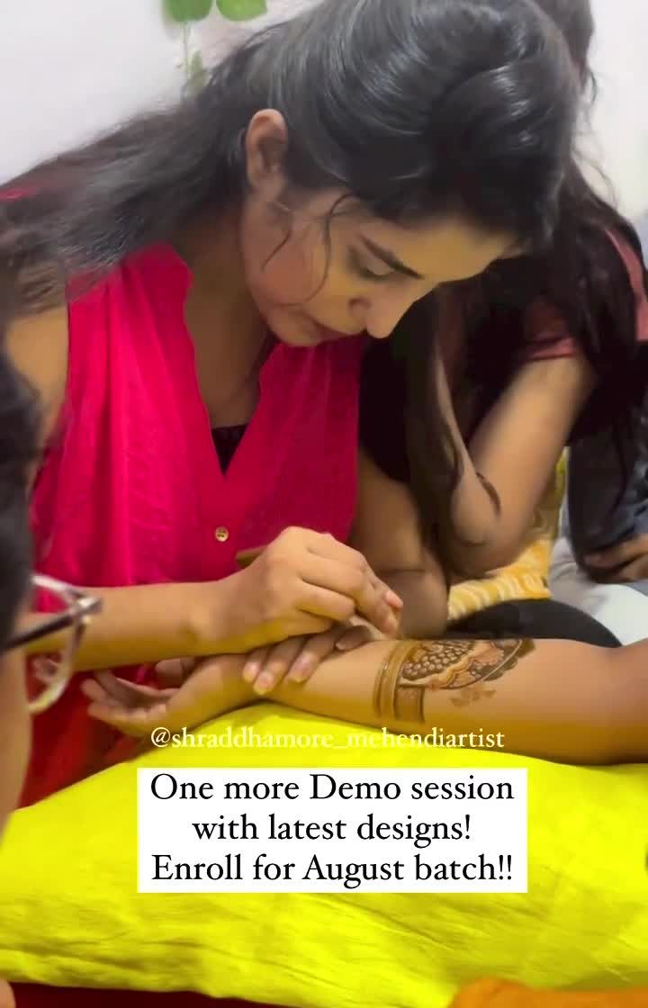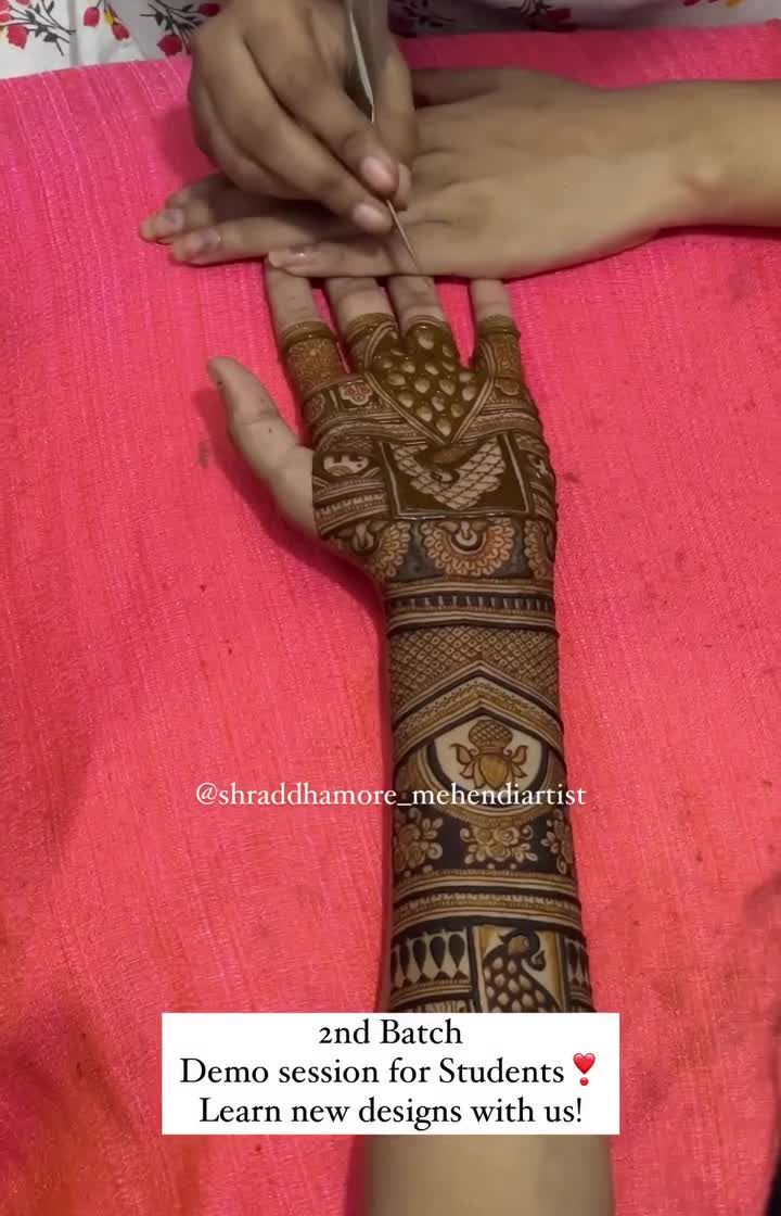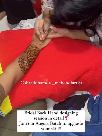 My classes are completely offline and held in small batches in Thane and Mulund to ensure you get personal, one-on-one attention. We focus on practical skills, from live demonstrations of new patterns and bridal back hand tutorials to dedicated practice days and even making your own mehendi paste.