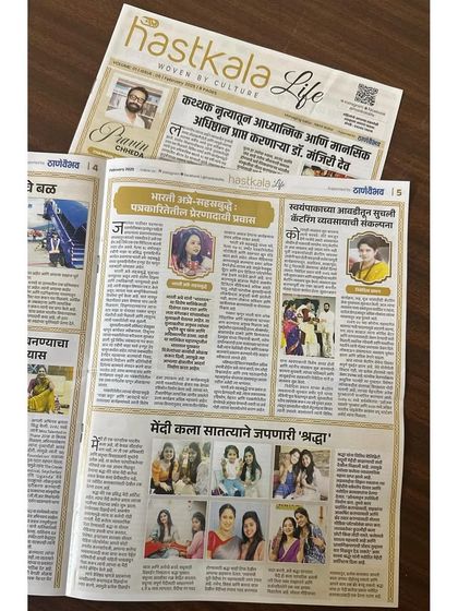 I believe "kutlihi kala choti kiwa mothi nasate" (no art is big or small). My journey from a college student to a professional mehendi artist with celebrity clients has been a dream. I am so grateful to have my work and story featured in publications like Hastkala Life.