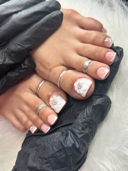 I do all kinds of nail art and extensions, from custom designs to bridal sets, using gel, acrylic, overlays, and no-glue techniques, so you get nails that match your style and last longer.