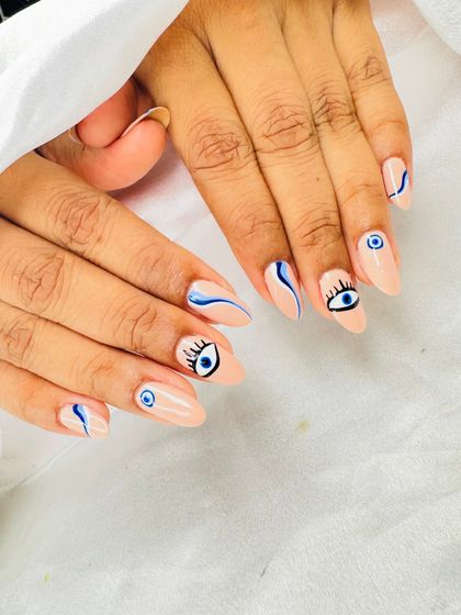 Nail Extensions & Art, Makeup, Mehndi - We do Gel, Acrylic, Ombre nail extensions, 3D nail art, Evil Eye designs, makeup, and Teej mehndi.