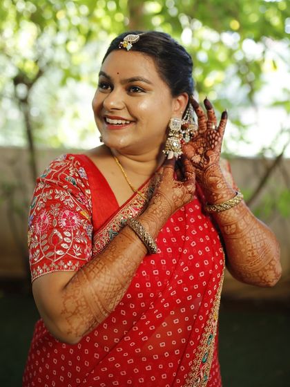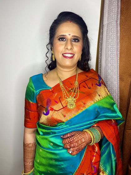 Hey, I’m Shreya Kamat, makeup and hair artist from Mumbai. Nine years I’ve been at this - since 2016, luxury bridal makeup’s become my thing. Your face, my canvas! Nothing beats that look on your face when you see yourself, queen vibes and all. From Marathi brides to Gujarati beauties, even party looks, I’m hooked on the magic. Mehendi, hairstyling, Insta trends for fun, but my real joy? Brushes in hand, making you feel fab.
