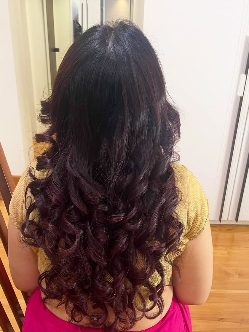 I style your own hair to create looks that are comfortable and complete your vibe. I offer my signature soft or defined curls, elegant updos like messy or classic buns, and festive styles adorned with real flowers like mogra, roses, or baby's breath for that perfect traditional touch.