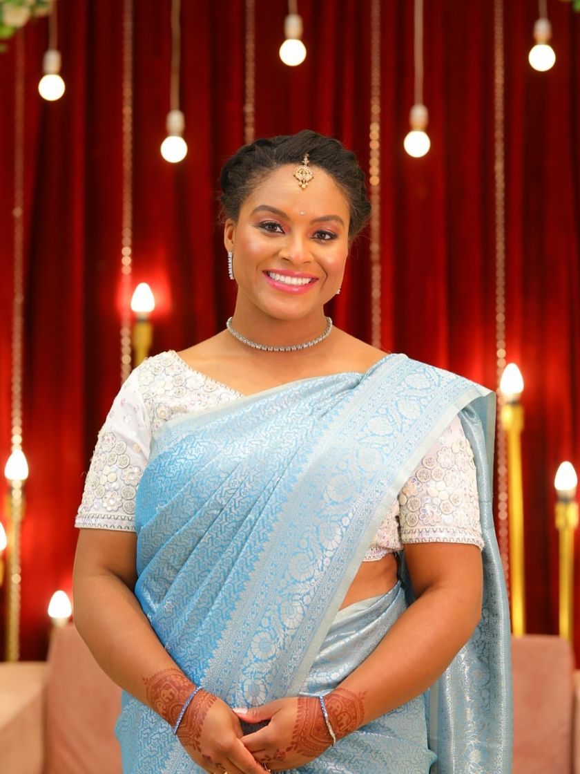 I have extensive experience working with foreign guests attending Indian weddings. I help you navigate traditional attire, like saree draping, and create a makeup and hair look that is beautiful, comfortable, and appropriate for the ceremonies, ensuring you feel confident and included in the celebration.