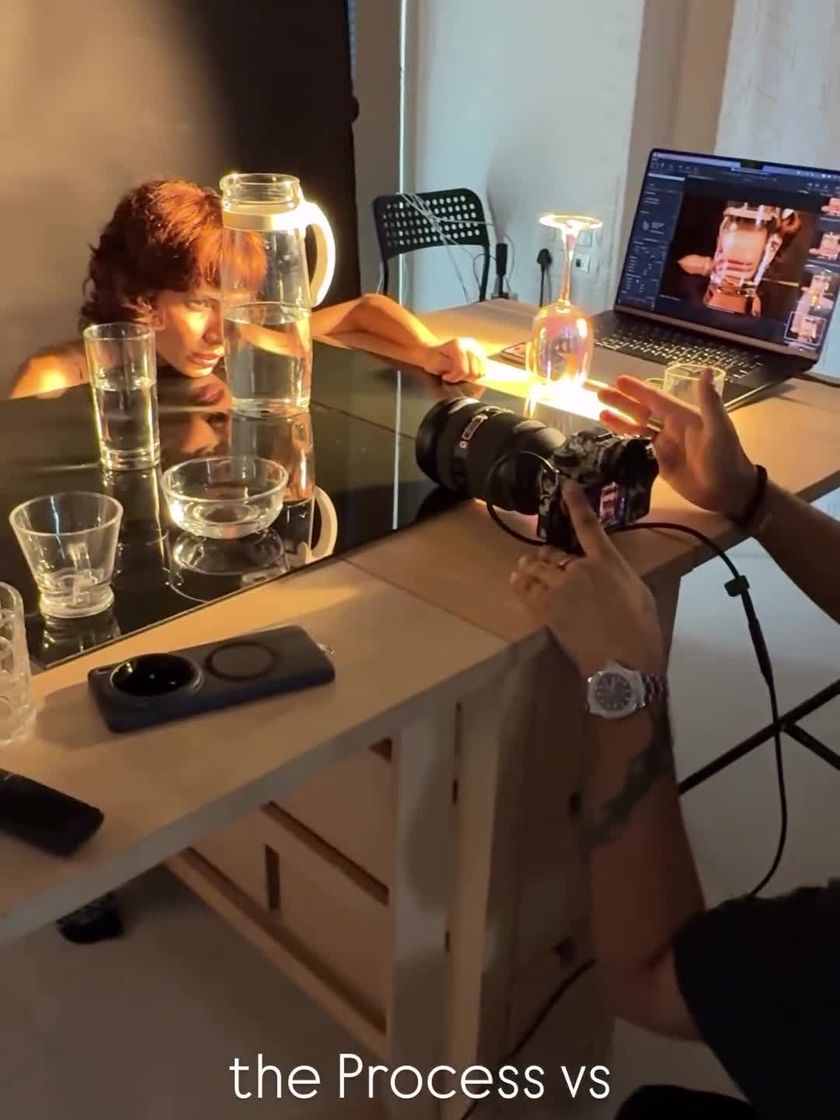 The final image is just the last step of a detailed process. This collection of behind-the-scenes clips and photos gives you a transparent look at how I work on set. See my lighting setups, how I direct talent, and the collaborative energy my team and I bring to every shoot.