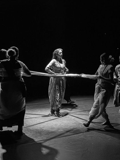 I start with a spark of an idea and build out the whole thing—from concept to costumes. My senior students often join me on stage, which honestly makes me really proud. Collaborating with musicians and dancers, sometimes even across languages, keeps it exciting and challenging.