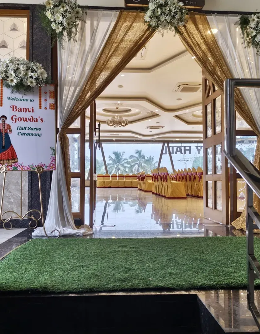 I believe the guest experience begins at the entrance. I create welcoming entryways using fabric drapes, floral arrangements, and personalized welcome signs. A beautiful entrance sets the tone for the event and provides a great photo opportunity for your guests.