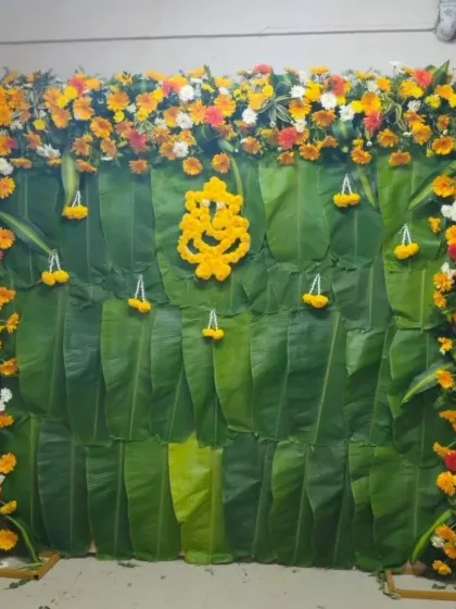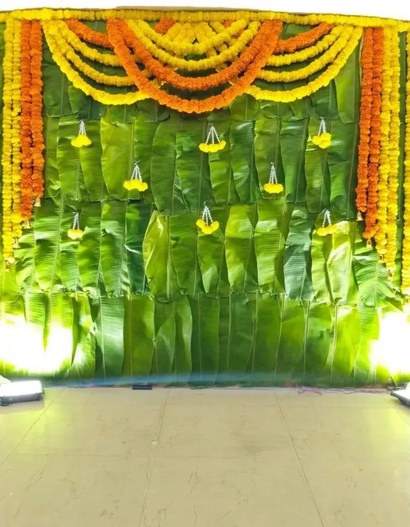 I design vibrant and fun setups perfect for Haldi and Mehendi ceremonies. I use a lot of marigolds, banana leaves, and colorful fabric drapes to create a festive and traditional atmosphere. I can create both stage backdrops for photos and dedicated ritual areas.