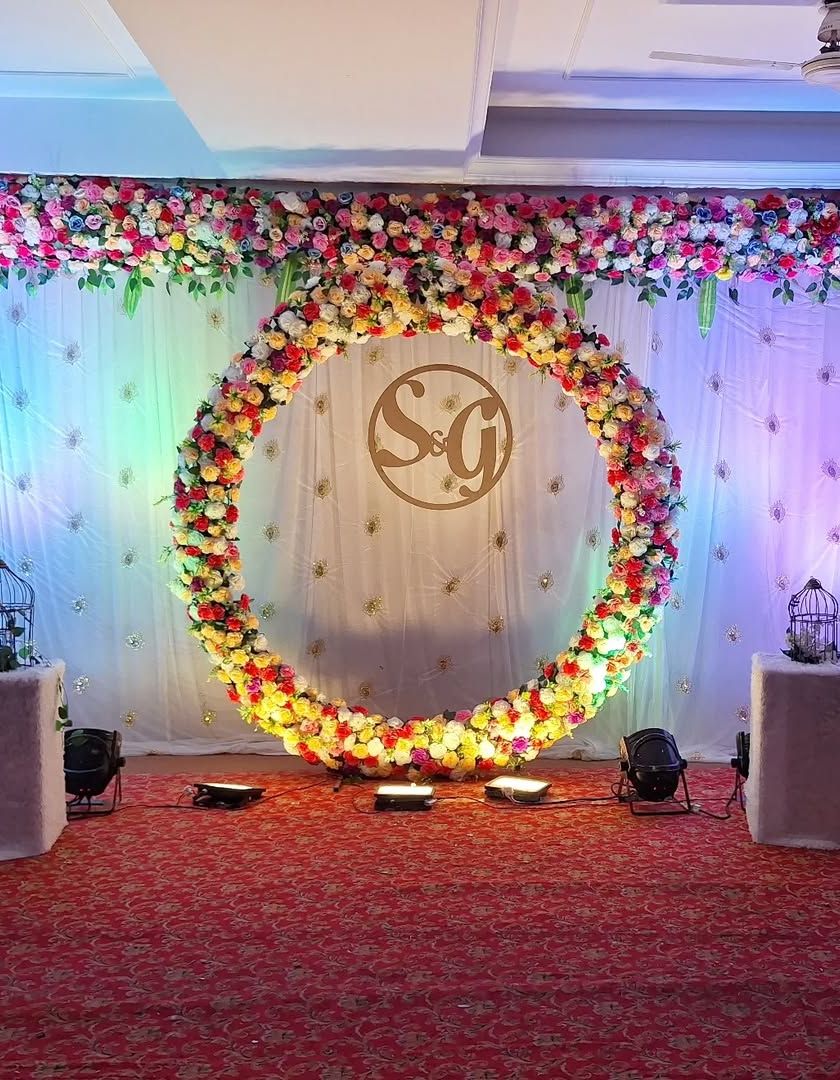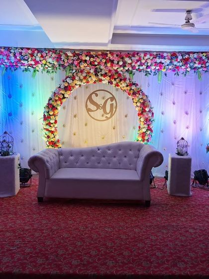 We design beautiful and elegant stages for your engagement ceremony, ring ceremony, or other wedding functions. Our services include creating stunning floral backdrops, customized seating for the couple, and personalized elements like monograms to make your event special.