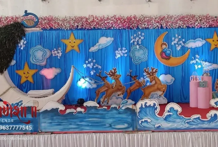We have deep experience in decorating for culturally significant events like 'Dohale Jevan' (baby shower), 'Barse' (naming ceremony), and 'Munj' (thread ceremony). We provide traditional elements like decorated cradles (palna) and props that reflect our rich Maharashtrian heritage.
