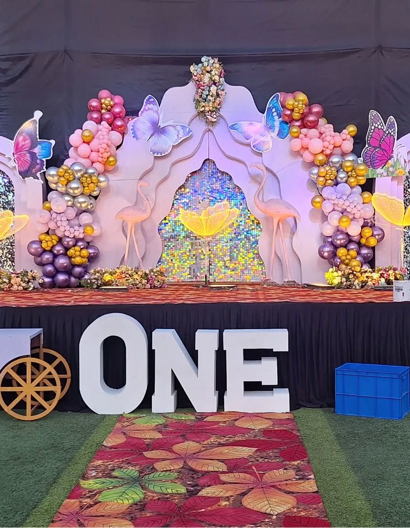 We create memorable birthday celebrations with fully customized themes. From a child's first birthday to any milestone, we provide everything from balloon arrangements and backdrops to unique props like large marquee letters and 3D character standees based on themes like Boss Baby, jungle, or butterfly princess.