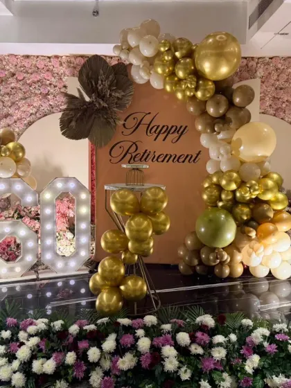 - For grown-ups, I do elegant anniversaries with gold and floral touches, pre-wedding function decoration with marigold curtains or colourful drapes, and stylish birthdays with black-gold themes or fairy-lit terraces.