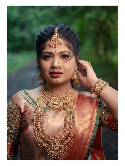 I’m obsessed with our roots. My Marathi Mulgi photoshoot is all about that classic Paithani or Nauvari saree, nath, and peshwai jewels. For festival special portraits, I go all out - Makar Sankranti with black saree and sugad, Diwali with warm lights, Haldi & Mehndi with floral jewellery. I also shoot South Indian silk saree looks and Bengali bride with paan pata.