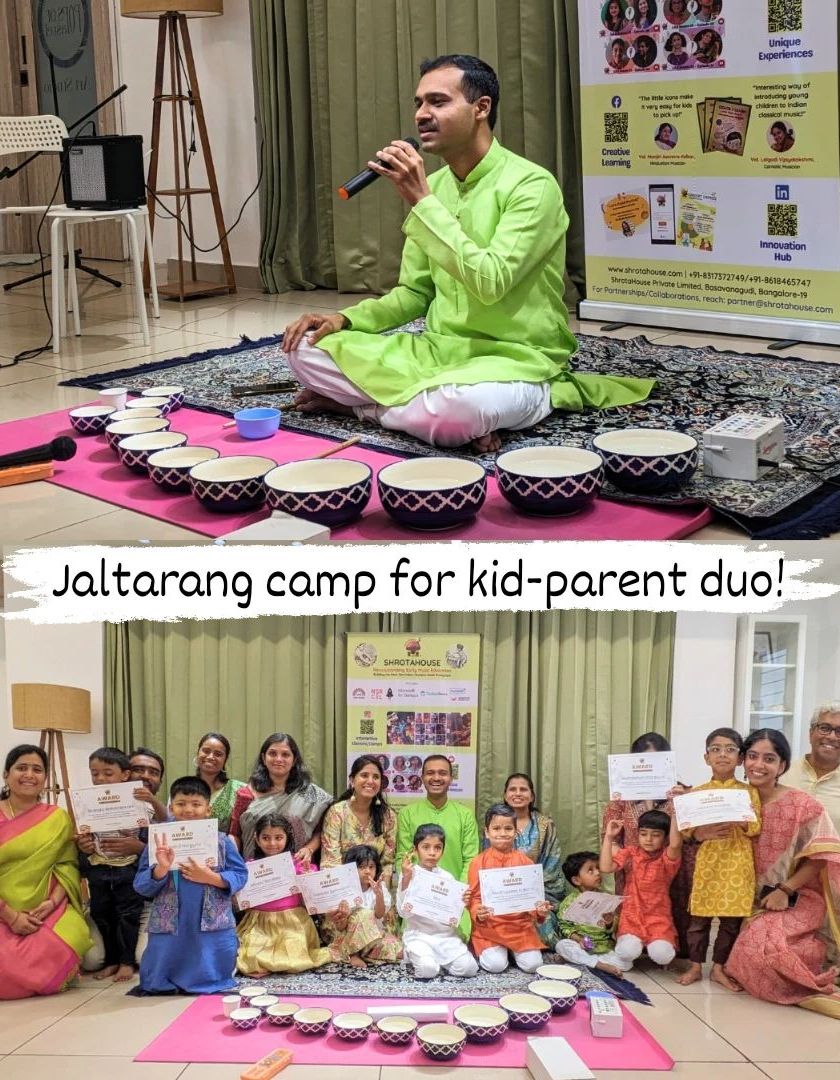 Discover one of our most unique offerings, the Jaltarang camp, where children and parents create music from bowls of water. This messy, loud, and joyful experience is a perfect example of how we make learning about melody and notes a fun-filled game.