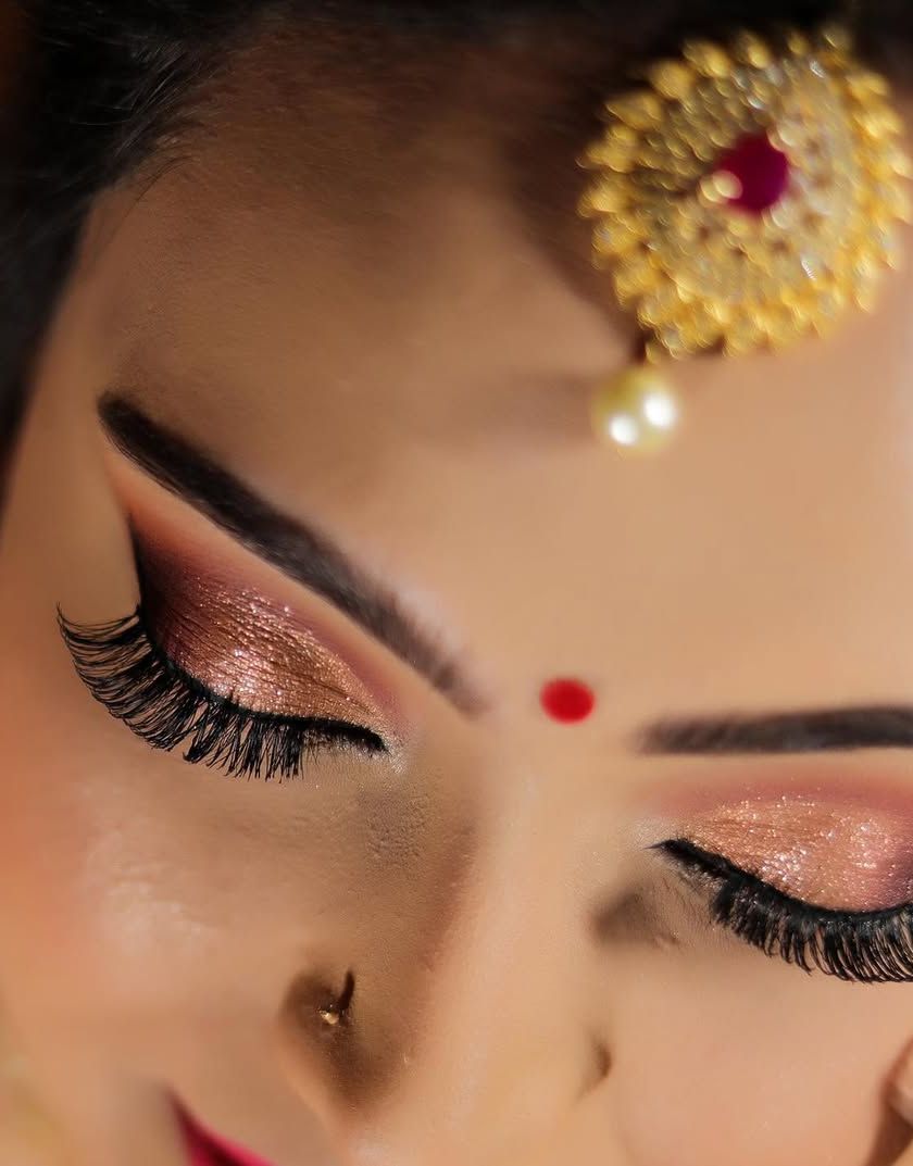 This is where we play with contemporary styles, from sparkling lehengas for a Sangeet to elegant gowns for a reception. I create modern looks that are glamorous, camera-ready, and tailored to your outfit and personality. This includes everything from full-glam shimmer to sophisticated, neutral styles.