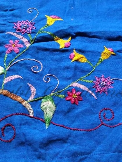 I teach traditional hand embroidery techniques in small, interactive classes focusing on floral and abstract designs with vibrant colors and detailed patterns. Each course runs for 6 sessions, with both weekday and weekend batches available.