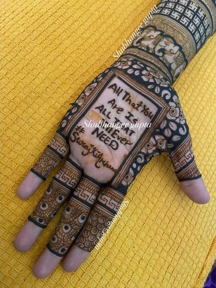 I create custom mehndi designs for weddings and all occasions, using only natural henna and adding personal touches like portraits, hashtags, and themed art.