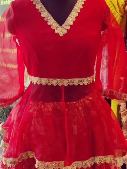 I specialize in creating bespoke bridal lehengas that tell your story. From classic red heritage pieces with intricate Zardosi work to elegant Banarasi silk ensembles, each lehenga is crafted to make your main wedding day unforgettable.