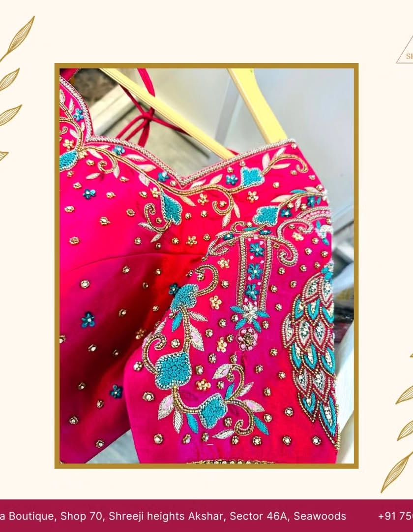 A perfectly fitted, beautifully designed blouse can elevate your entire look. I create personalized bridal blouses featuring unique back designs, traditional motifs, and exquisite handwork to complement your saree or lehenga.