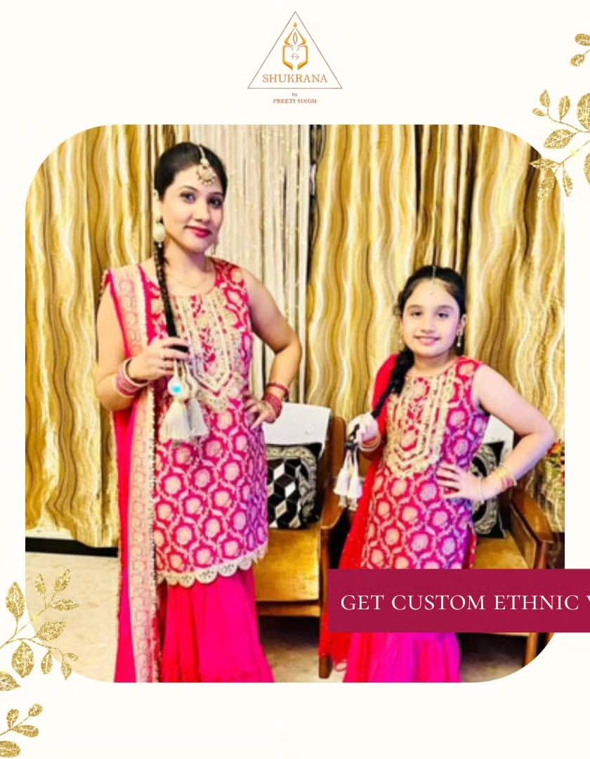 Celebrate your special bond with my bespoke mother-daughter outfits. I design coordinated ensembles for you and your little one, perfect for family functions, festivals, or photoshoots. From matching lehengas to identical dresses, I create memories you can wear.