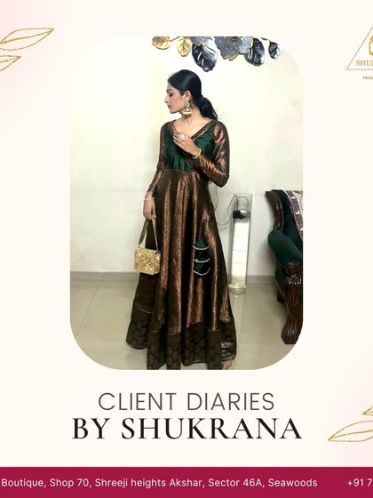 This is the first collection a user sees, designed to make an immediate impact. I have selected these visuals to showcase the breadth of your skill, from intricate bridal wear to modern fusion styles, while highlighting your commitment to inclusivity and the personal stories of your clients. The hero item is a stunning client photo that perfectly captures the elegance and joy of wearing a custom Shukrana creation.
