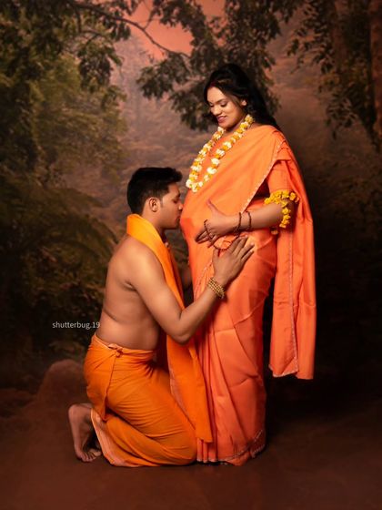 No two families are the same, so we don’t do cookie-cutter sessions. If you want glamorous maternity portraits in a flowing gown, we’ve got options. Prefer a more traditional maternity photoshoot? We can style you with sarees, jewelry, and even go for a Ram Sita vibe. Some folks love the casual look - denim, sweaters, even a Vogue-style concept. Want something cozy and boho? We use blankets, pampas grass, and macrame. Plus, we’re known for striking black and white silhouette maternity photos that really highlight your baby bump.