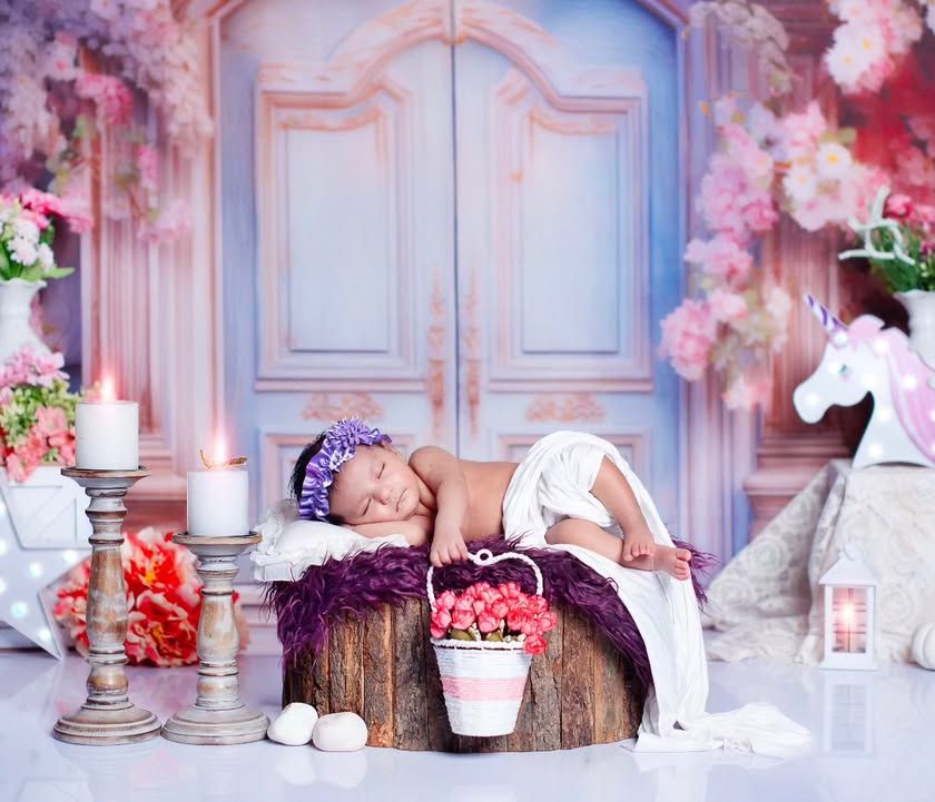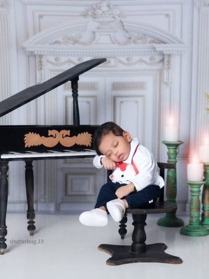 This is one of our most sophisticated and unique setups. Featuring a miniature grand piano, warm candlelight, and classic decor, this theme is perfect for creating elegant and timeless portraits of your newborn.
