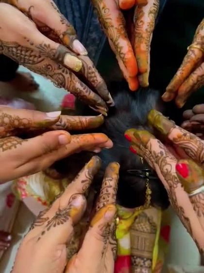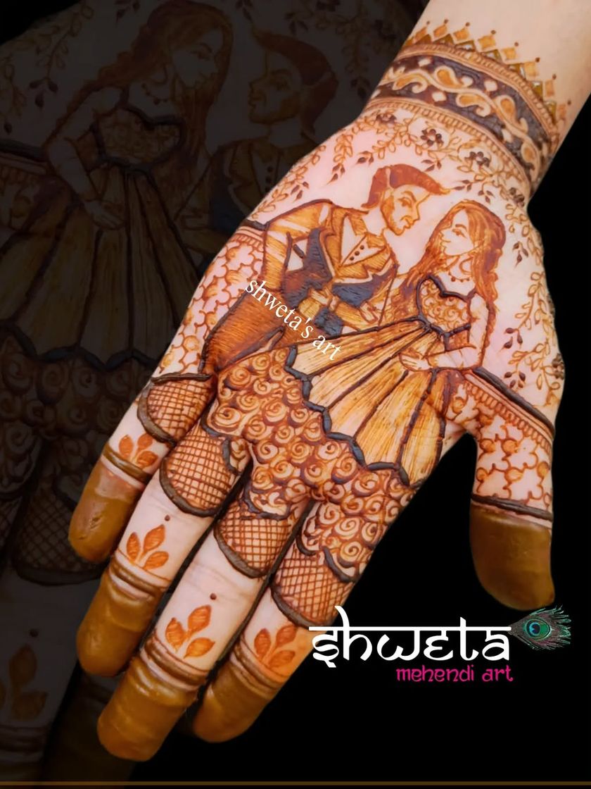 Your love story, told in henna. I specialize in creating custom portraits of the bride and groom, family members, and even pets, weaving them into your bridal mehendi. We can also illustrate special moments, from your proposal story to wedding rituals like the varmala or Bengali shubhodrishti.