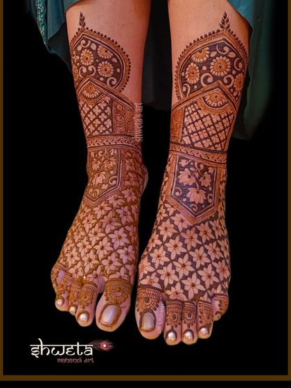 Complete your bridal look with stunning mehendi for your feet. I create designs that complement your hand mehendi, from simple, elegant patterns to full-coverage designs that go up the leg. We can incorporate motifs like peacocks, lotuses, and architectural elements.