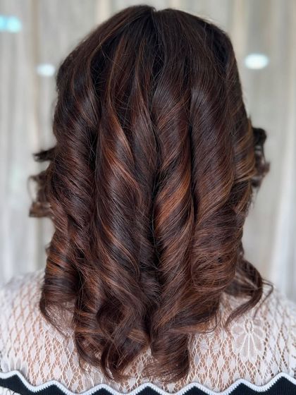 We create custom hair and makeup looks for weddings and special occasions, focusing on natural styles and healthy hair that match your event and outfit.