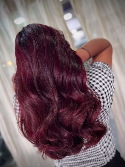 For those ready to make a statement, we love playing with vibrant and unconventional colors. We create everything from fiery all-over reds and deep burgundies to playful peekaboo highlights in shades of purple and pink, ensuring your hair is as unique as you are.