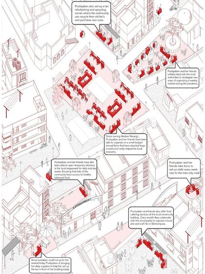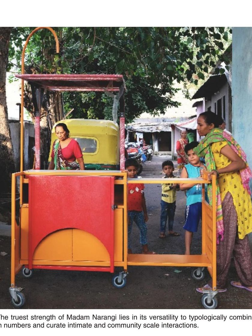 In Ahmedabad, we reimagined the street cart ('lari') to create a tool for economic empowerment for women vendors. The 'Madam Narangi' is a mobile, modular system that is highly functional for a single user, can aggregate to form community markets, and is designed to be upcycled, extending its life and value.