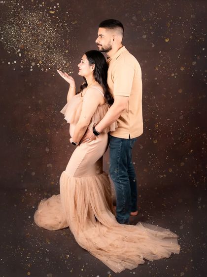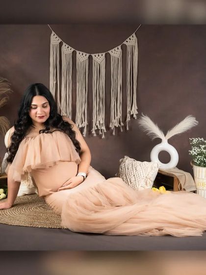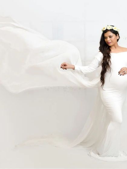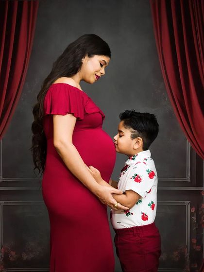 I offer maternity photoshoots in studio or at your home with different styles, gowns and props included, and you can choose solo, couple or family shots.