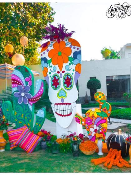 For celebrations that demand energy and color, I design fully immersive themed events. This gallery showcases a festive Holi party with rainbow canopies and a Mexican-inspired fiesta with bold props and traditional patterns.