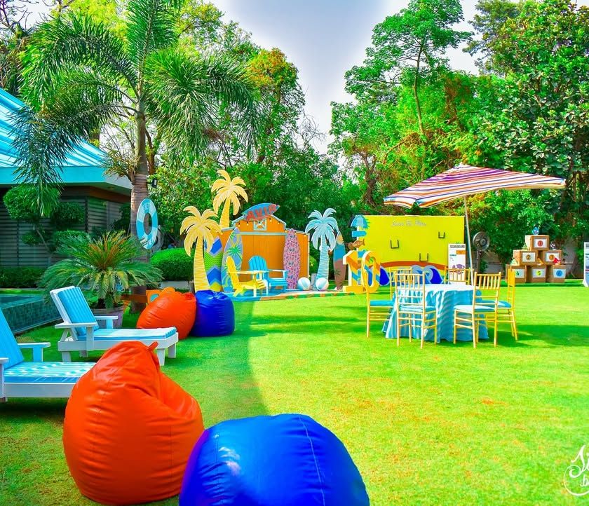 I can transform any outdoor space, like a lawn or poolside, into a spectacular party zone. I provide complete solutions including large, rainproof tents, custom flooring, themed furniture, and ambient lighting to ensure the celebration is perfect in any weather.