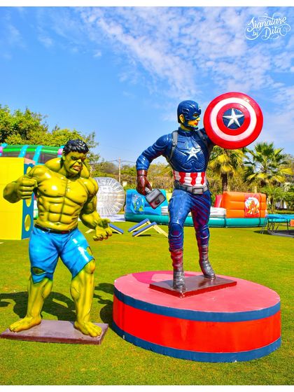 I bring the action-packed worlds of Marvel, DC, and Transformers to life. From life-sized character statues and custom backdrops to themed activity zones like climbing walls and Nerf gun ranges, I create an immersive universe for your little hero.