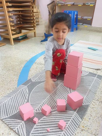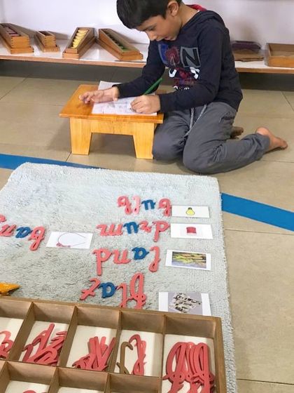 Hands-on Montessori Learning - Kids use Montessori materials for math, language, geometry, and sensorial stuff. Learning is always hands-on.