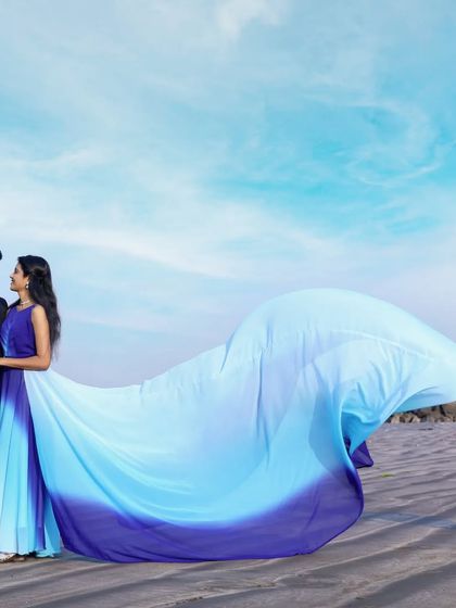We offer a wide range of gowns and coordinated couple outfits perfect for your pre-wedding, engagement, or anniversary photoshoot. Our collection includes dramatic long-tail gowns in every color, available to rent or buy.