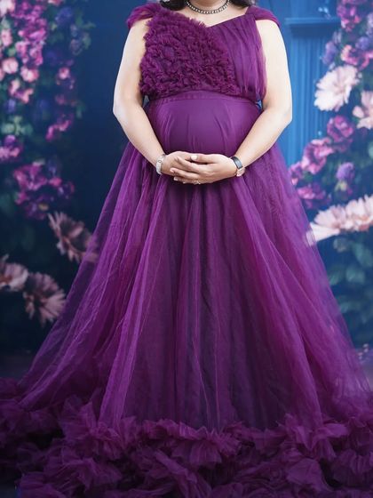 My maternity gowns are designed for comfort without compromising on style, available to rent or buy. I offer various styles like ruffle gowns, jacket gowns, and convertible pieces, ensuring you look and feel beautiful during your photoshoot.