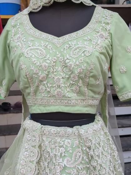 Whether you're the bride or a guest, I have a lehenga for you, available for rent or custom creation. I specialize in detailed handwork on velvet, full-flared designs for festivals, and elegant options for wedding parties.