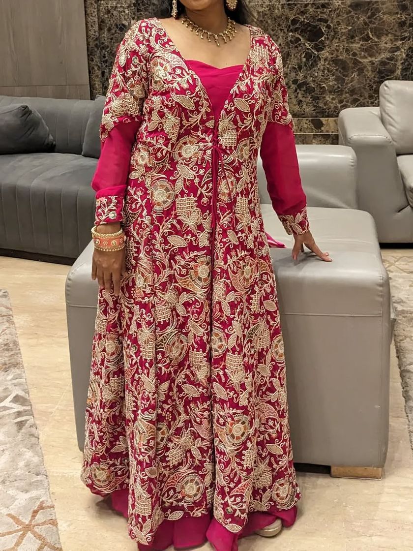I create hassle-free, ready-to-wear sarees and unique Indo-Western outfits like jacket gowns and lehenga sarees. I also offer custom handwork to elevate your simple sarees and blouses for a designer look.